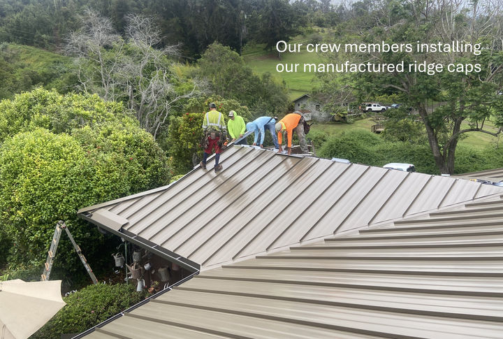 This project in Maui features a fully custom-built roof and gutter system, fabricated and installed entirely on-site to ensure a precise fit and optimal performance. Utilizing our in-house equipment, we manufactured all roofing panels, trim flashing, and seamless gutters, eliminating delays and guaranteeing top-tier quality control.The combination of our skilled craftsmanship, tailored flashing profiles, and complete on-site fabrication results in a high-performance, cleanly integrated roofing system built to withstand the elements and deliver lasting value.